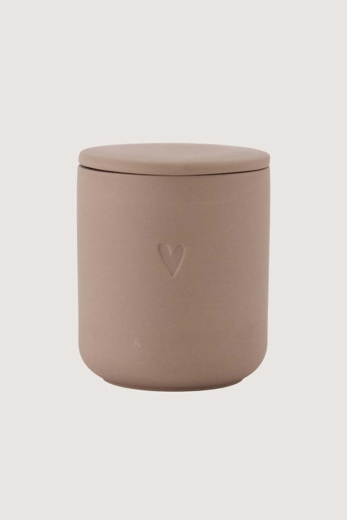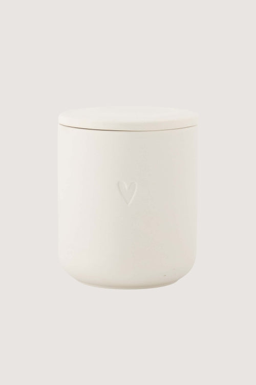 Deze geurkaars brengt een warme sfeer in huis met een subtiele geur die rust en ontspanning biedt. Ze is verpakt in een mat keramieken potje met een klein hartje als detail, wat het een eigentijdse en liefdevolle uitstraling geeft. Dankzij het deksel blijft de geur langer behouden en kun je de geurkaars makkelijk afsluiten.