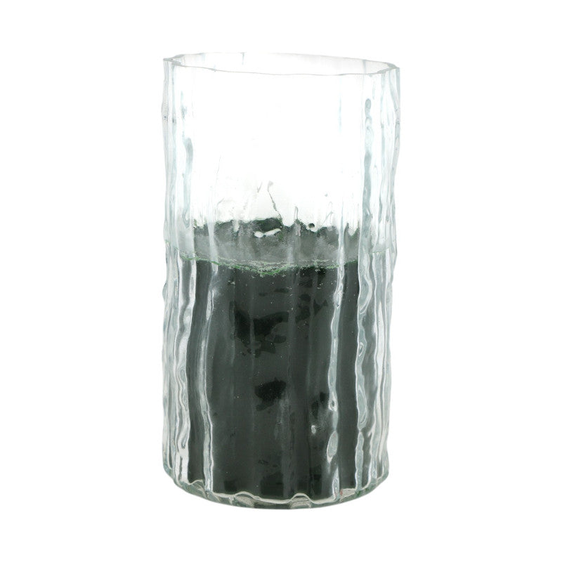 Creëer een warme en gezellige sfeer binnenshuis met deze stijlvolle kaars, gegoten in een glazen vaas.