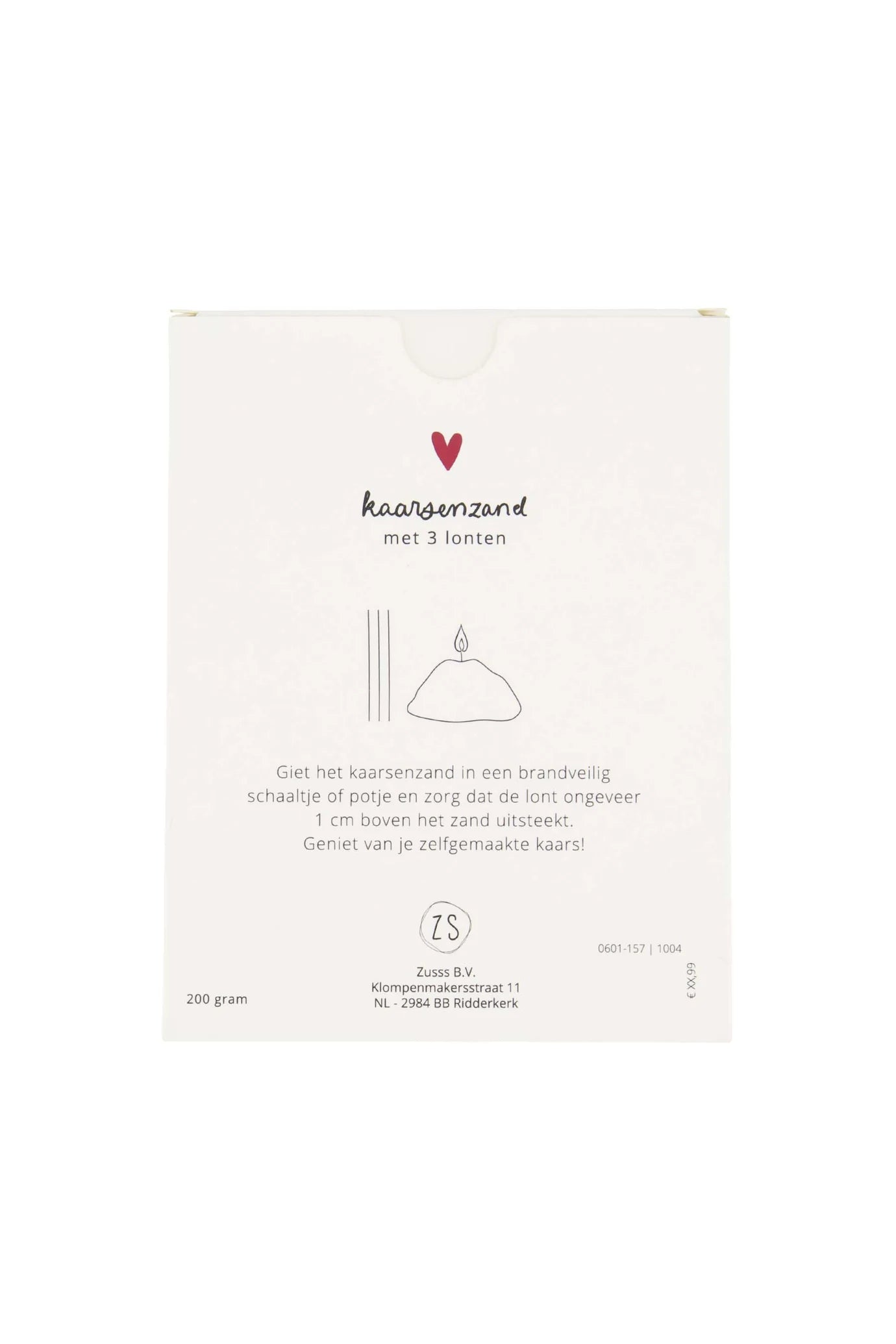 Het witte kaarsenzand komt in een mooi doosje met een lief hartje, perfect passend bij de Zusss stijl. Gebruik het kaarsenzand om kaarsen stevig te zetten in verschillende houders en creëer een gezellige sfeer. Een subtiele toevoeging uit de wooncategorie die jouw interieur nét dat beetje extra geeft.