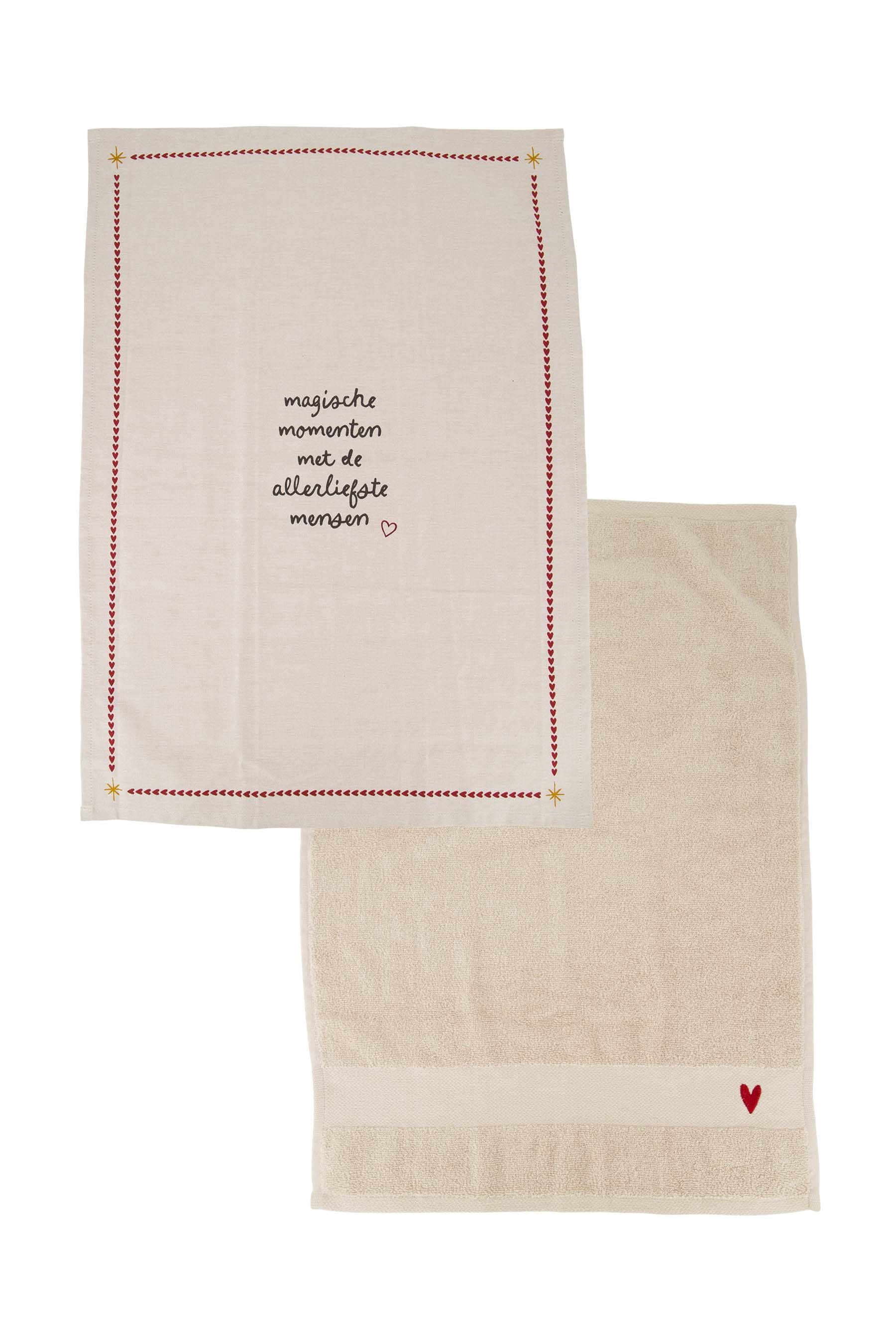 De combinatie van een fijn katoenen theedoek met een bijpassende handdoek maakt deze set bijzonder veelzijdig en sfeervol in gebruik. Perfect om jouw keuken een warm en verzorgd gevoel te geven.