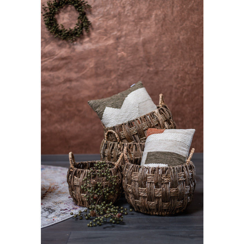 Een set van vier manden biedt zowel praktische opbergmogelijkheden als een natuurlijke uitstraling voor uw interieur. Ideaal om een plant of kerstboom in te zetten.