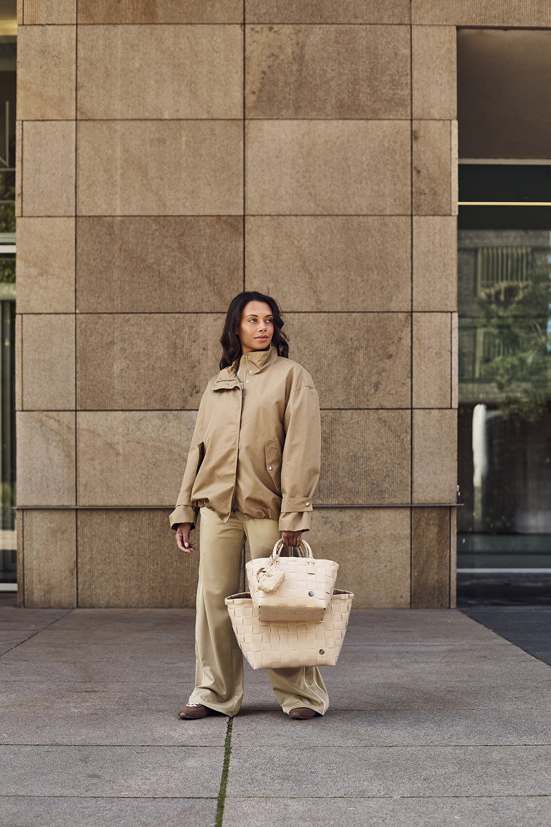 Gemaakt van stevig, gerecycled materiaal en ontworpen om jarenlang mee te gaan. Een compacte citybag die je makkelijk meeneemt naar je werk, maar waar ook nog je dagelijkse essentials en een snelle boodschap in passen. Als extra detail hangt er aan het hengsel een speelse tassel in een contrasterende kleur. Combineer de mini PARIS met de PIXIE bag charm, en je bent ready to go!