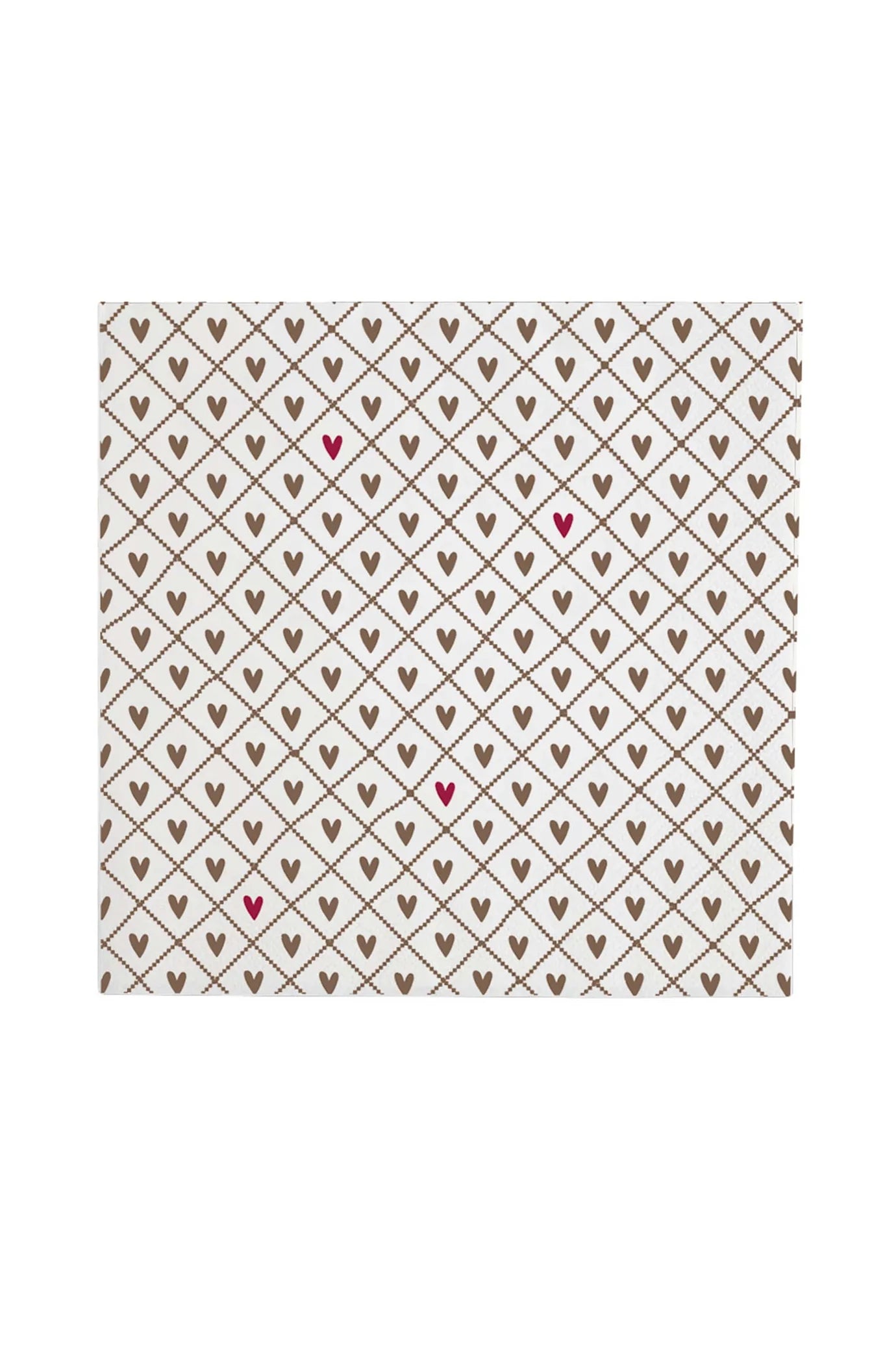 Deze servetten zijn perfect voor in de keuken en vallen op door het lieve patroon met kleine hartjes in wit, port en bruin.