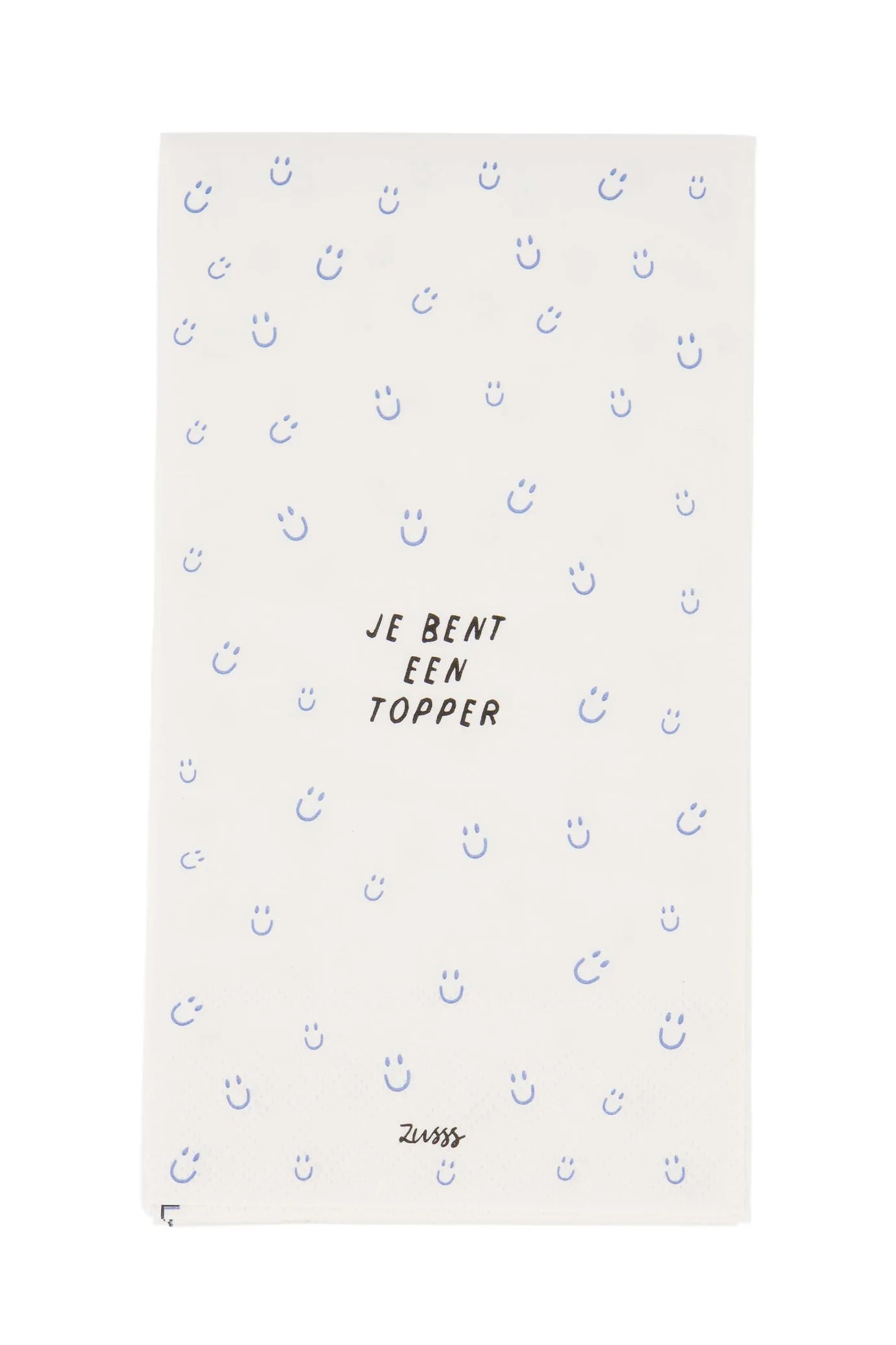 De servetten met het speelse ‘Je bent een topper’ design en vrolijke blauwe gezichtjes maken iedere maaltijd gezelliger.