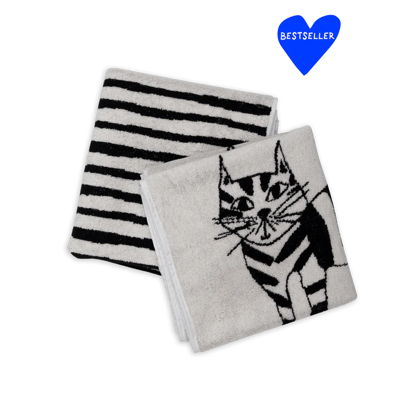 Een set van 2 badhanddoeken met illustratie van helen b.