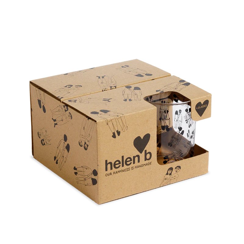 4 glazen met illustratie van helen b, in een mooie kartonnen cadeauverpakking.