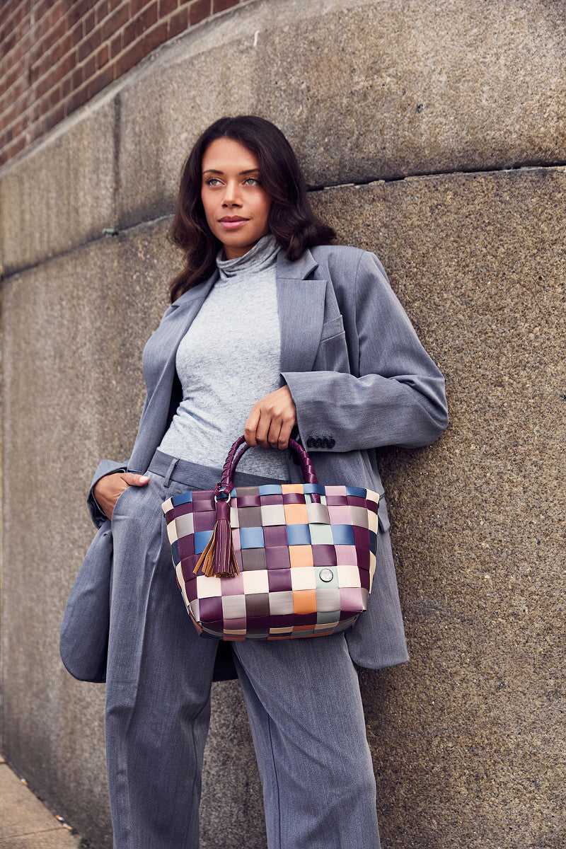 Gemaakt van stevig, gerecycled materiaal en ontworpen om jarenlang mee te gaan. Een compacte citybag die je makkelijk meeneemt naar je werk, maar waar ook nog je dagelijkse essentials en een snelle boodschap in passen. Als extra detail hangt er aan het hengsel een speelse tassel in een contrasterende kleur. Combineer de mini PARIS met de PIXIE bag charm, en je bent ready to go!