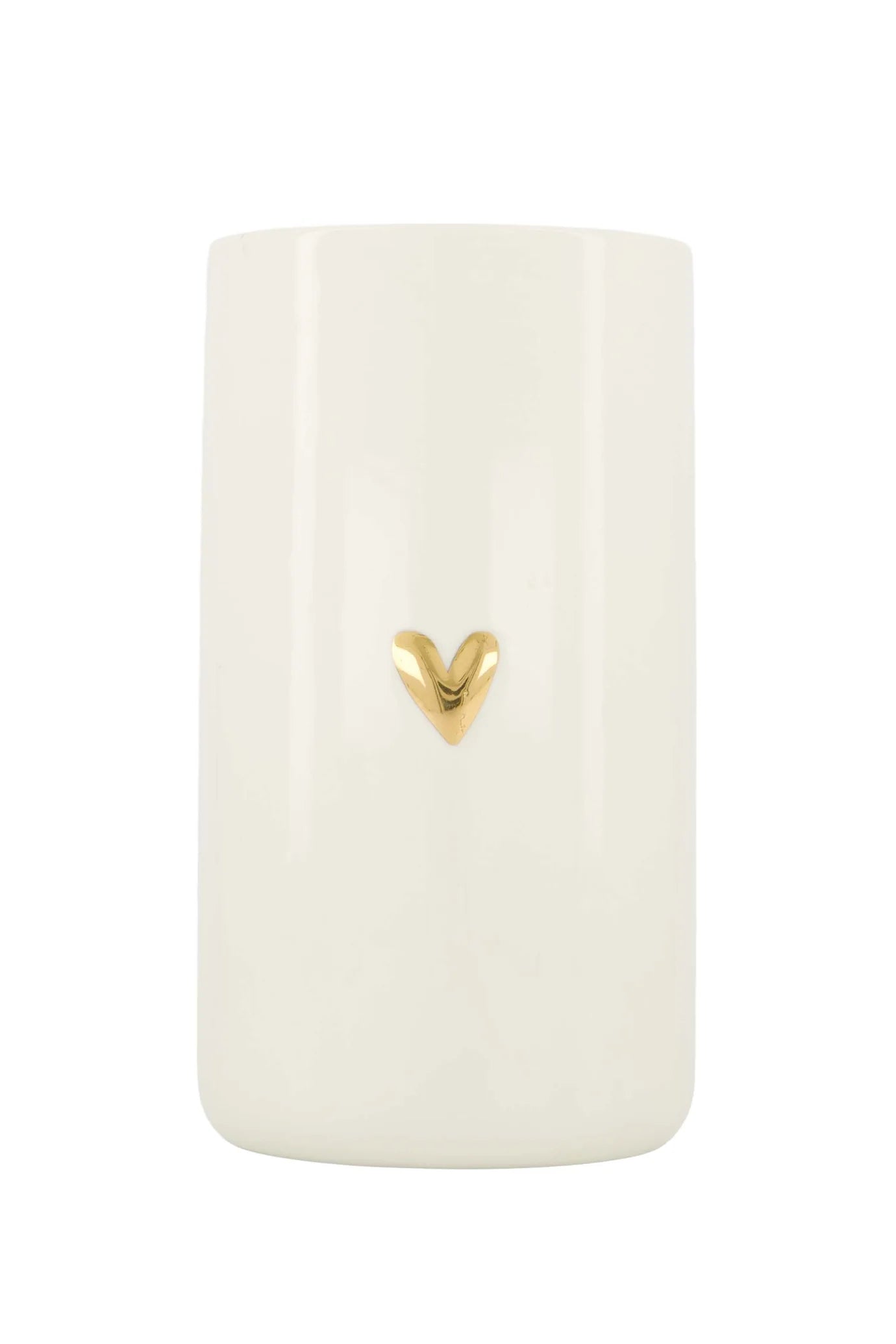 Deze voorraadpot keramiek heeft een warm witte kleur met een subtiel goudkleurig hartje en een natuurlijke houten deksel. Perfect om je keukenaccessoires netjes op te bergen en toch erg decoratief.